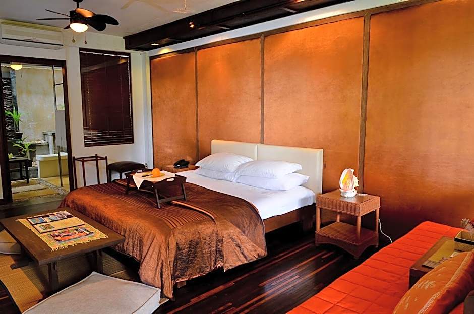 Located on the ground floor, air-conditioned room includes a flat-screen cable TV, seating area and work desk. Private outdoor bathroom has a bathtub, shower and free toiletries. Free bottled water is provided.